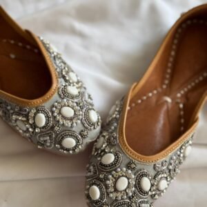 Sky Grey Mirror Embroidery Jutti.