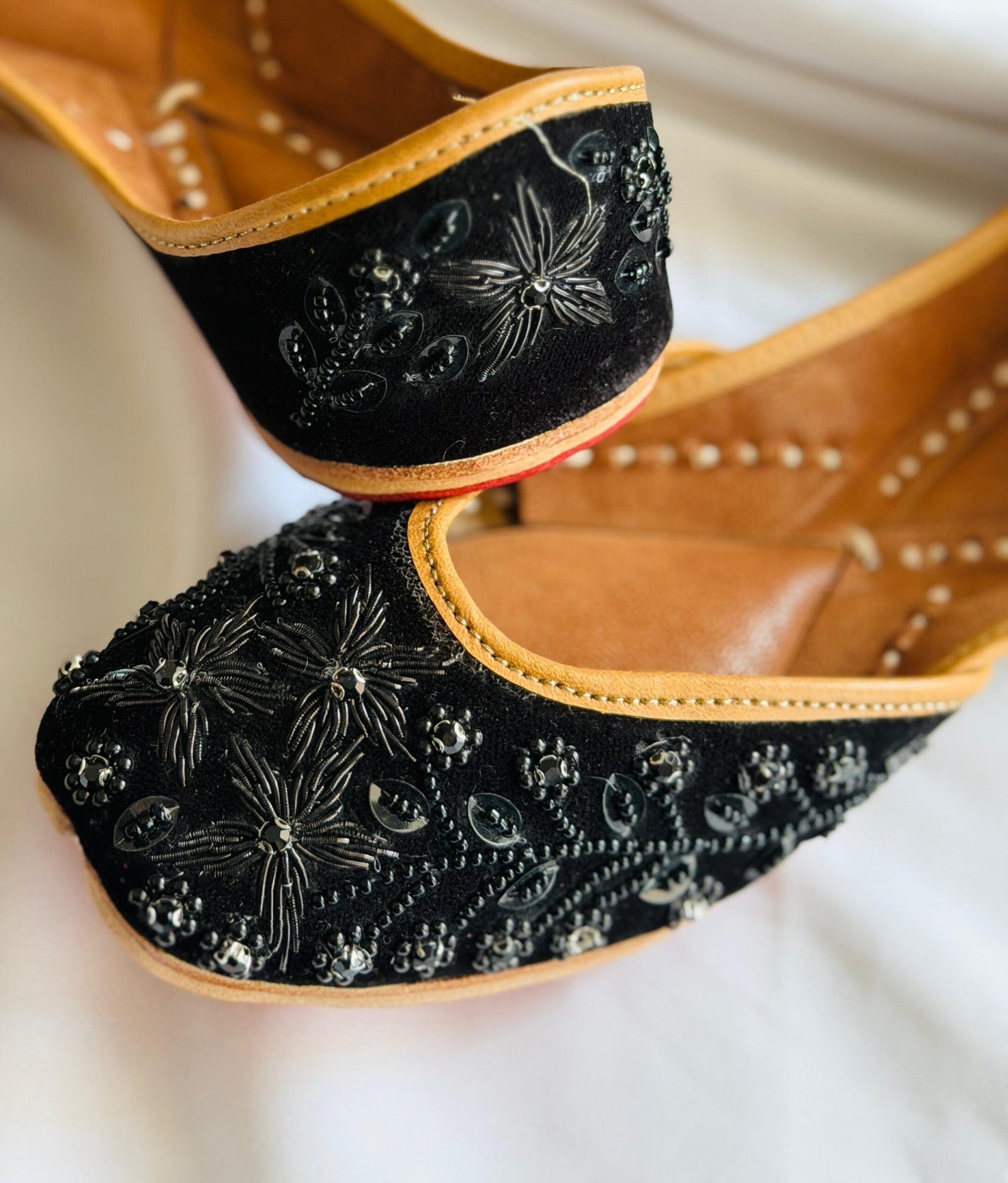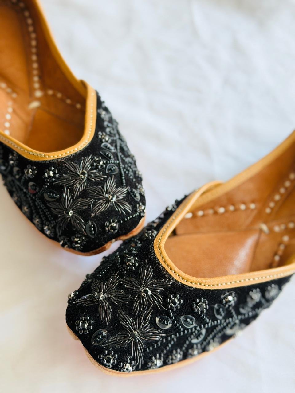 Beautiful handcrafted Oriando Black Leaf Embroidery Jutti. Embroidery Jutti. Embroidery Jutti . Embroidery leather Jutti Embroidery Beed work wedding juttis.