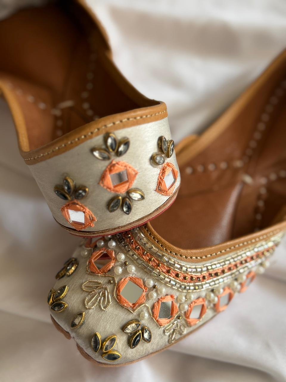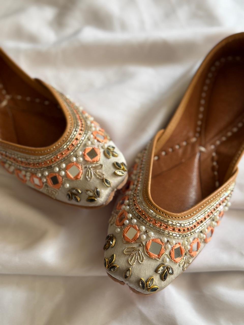 Beautiful handcrafted Grey Mirror Embroidery Jutti. Embroidery Jutti . Embroidery leather Jutti Embroidery Beed work wedding juttis.